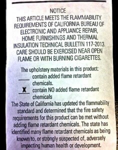 How long did I have to wait? 3 years! When my husband and I recently bought a new couch, I wanted to be sure it wouldn’t contain any flame retardants. The store manager emailed me a copy of the couch label stating “contains no added flame retardant chemicals.” Yay! Now we have a new couch without flame retardants and everyone is happy – apart from the dogs, who are not supposed to jump up (but still do).